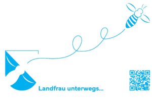 Die Biene geht mit allen Landfrauen auf Reisen. Bestellen Sie jetzt den Auto-Heckscheiben-Kleber "Landfrau unterwegs..." in der Grösse A4.