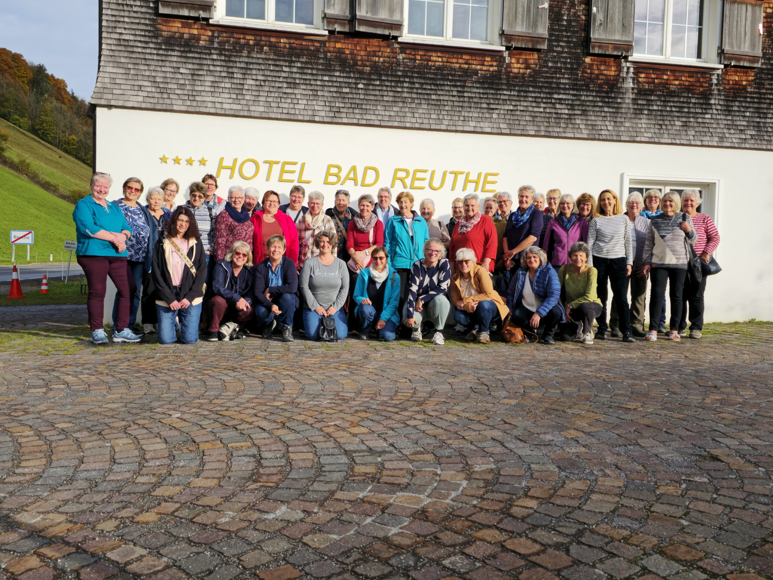Hermine Frei hatte für unsere Wellnesstage Bad Reuthe im Bregenzerwald ausgesucht. Ihre Enttäuschung über den schlechten Wetterbericht, liess sie sich nicht anmerken, versorgte die vierzig Auszeit-Teilnehmerinnen auf der Non-Stopp Hinfahrt mit Biberli, Kafi und Informationen über unsere Zielregion. Unsere Begeisterung über die schöne Landschaft, die sich uns nach dem Überqueren des Bödeles präsentierte, musste auch auf Petrus ansteckend gewirkt haben: Statt des angesagten dreitägigen Regenwetters, schickte er uns den lieben Föhn und wir konnten bei Sonnenschein und angenehmen Temperaturen im Wasser plantschen, die Gegend wandernd erkunden, mit dem Fahrrad eine Runde drehen oder die Flaniermeile Bezaus unsicher machen.