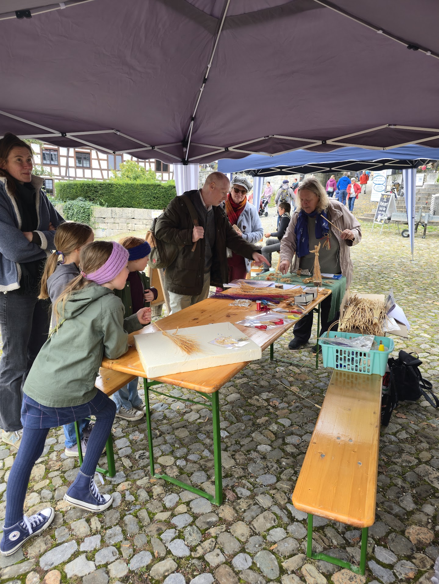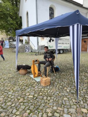 Selbstverständlich war auch für die Kleinsten etwas dabei! Neben einem Stand, der den Besuchern das Handwerk des Spinnens zeigte, gab es auch die Möglichkeit, Stroh zu flechten und die beliebten Äntli aus dem Brunnen zu fischen, um einen Preis zu ergattern.