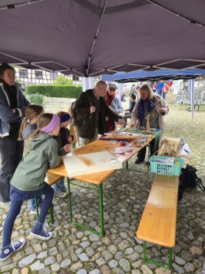 Ganz nach unserem Gusto -Traditionell, aber nicht wie immer! – führten wir auch dieses Jahr unseren Herbstmarkt durch. Unsere Entchen warteten für einmal ziemlich einsam im Brunnen auf die jungen Fischerinnen und Fischer: Die Marktstände waren nicht wie in den letzten Jahren um den Brunnen drapiert, sondern befanden sich samt Festwirtschaft auf dem Platz der Stiftung Schloss Regensberg. Grund dafür war der Umbau des Kirchgemeindehauses.