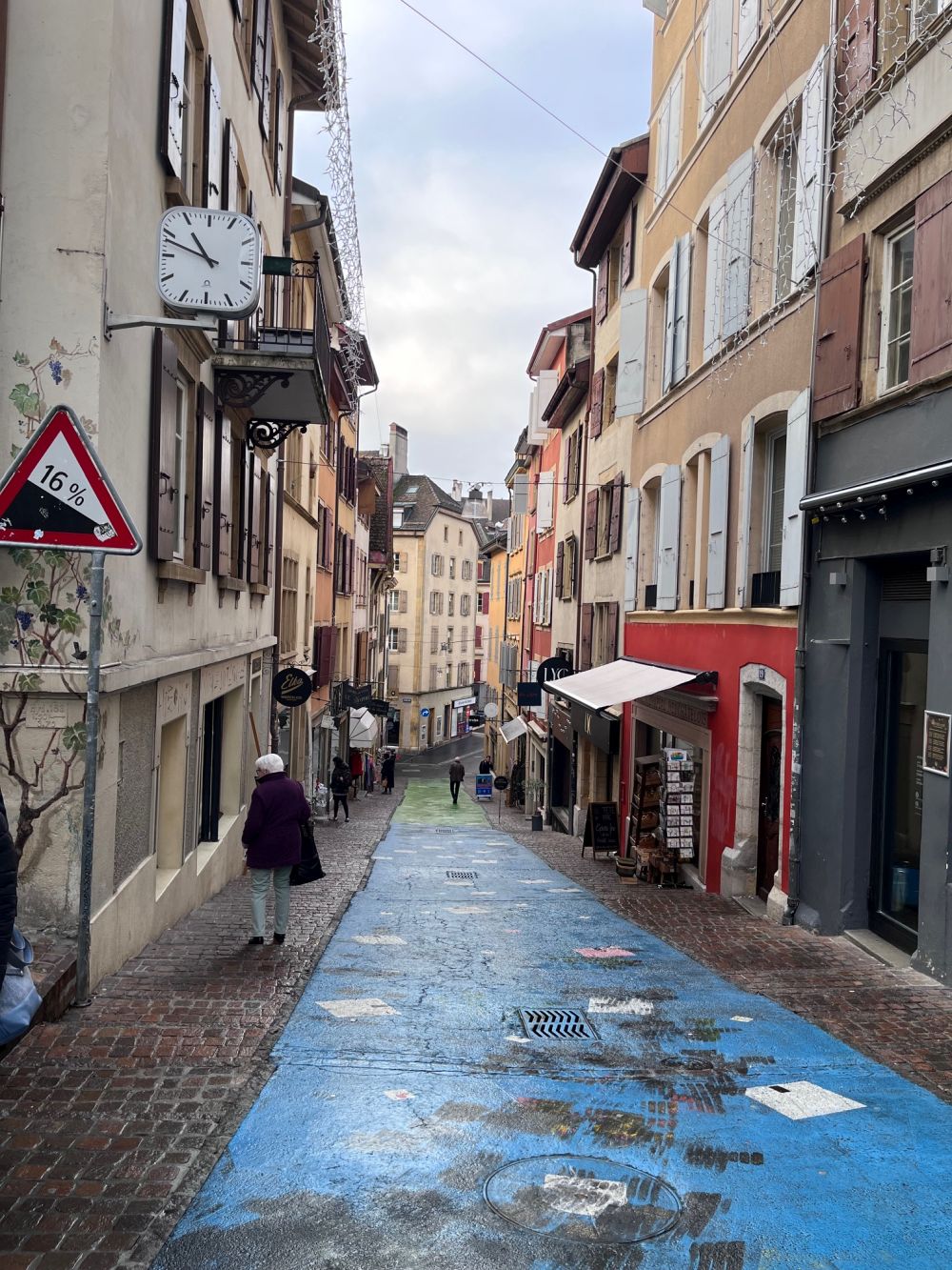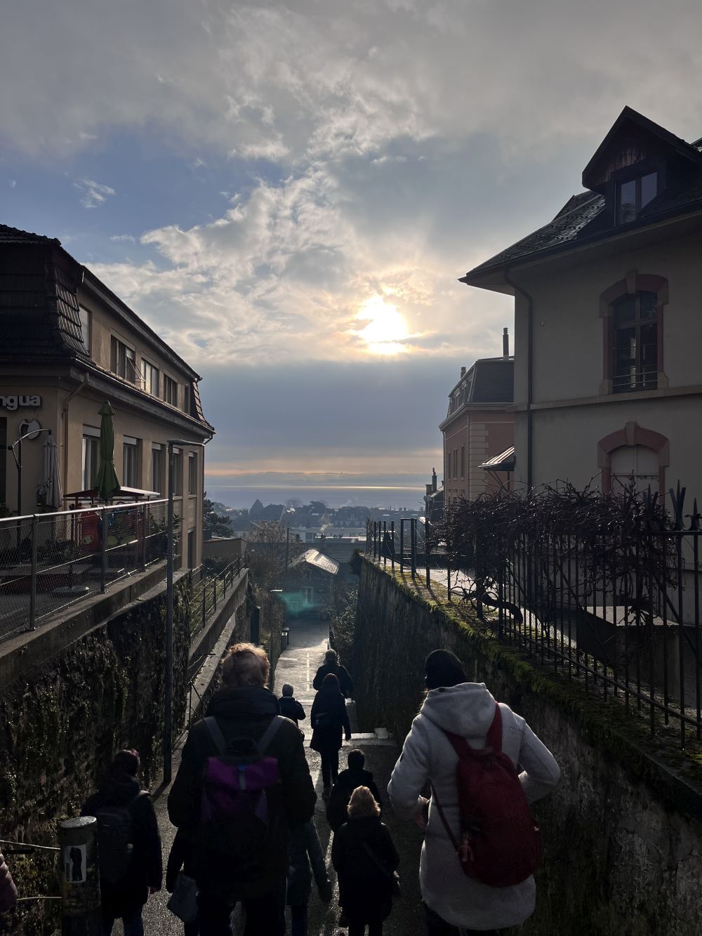 Die Stadt Neuenburg liegt am See und es wird französisch gesprochen. So viel wussten wohl die meisten. Aber sonst war es für fast alle eine unbekannte Stadt. Nach der Ankunft suchten sich die Frauen ihren Gruppenführer oder -führerin und genossen anschliessend die zweieinhalbstündige Führung. Der Führer meiner Gruppe war ein sehr charmanter Frühpensionär aus der Region mit einem liebenswerten Deutsch mit französischem Akzent. Er führte uns mit vielen Informationen quer durch die Stadt. Treppen runter, schmale Gässchen hinauf, steile farbig Strassen wieder runter, Treppen wieder rauf, runter und dann als Abschluss gemütlich dem See entlang.