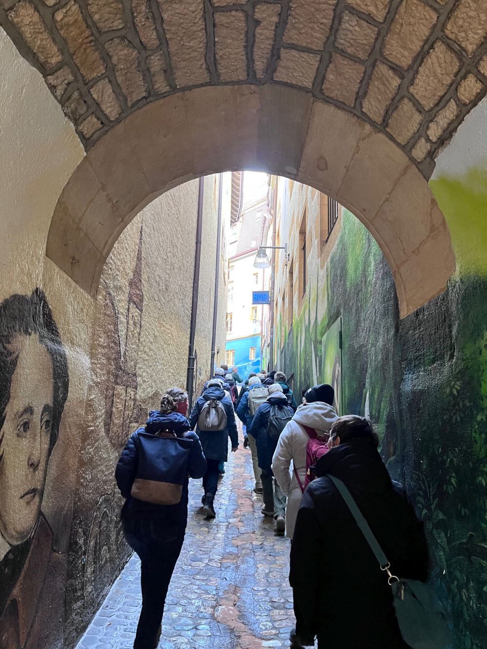 Irgendwann im Laufe des Morgens hörte es auf zu regnen, aber vor lauter Eindrücken registrierten wir dies kaum. Trocken und sehr hungrig trafen wir im Restaurant Stadtkeller ein. In der beeindruckenden Gaststube genossen wir die leckere Kügelipastete und ein Dessert – hungrig musste sicher niemand bleiben.